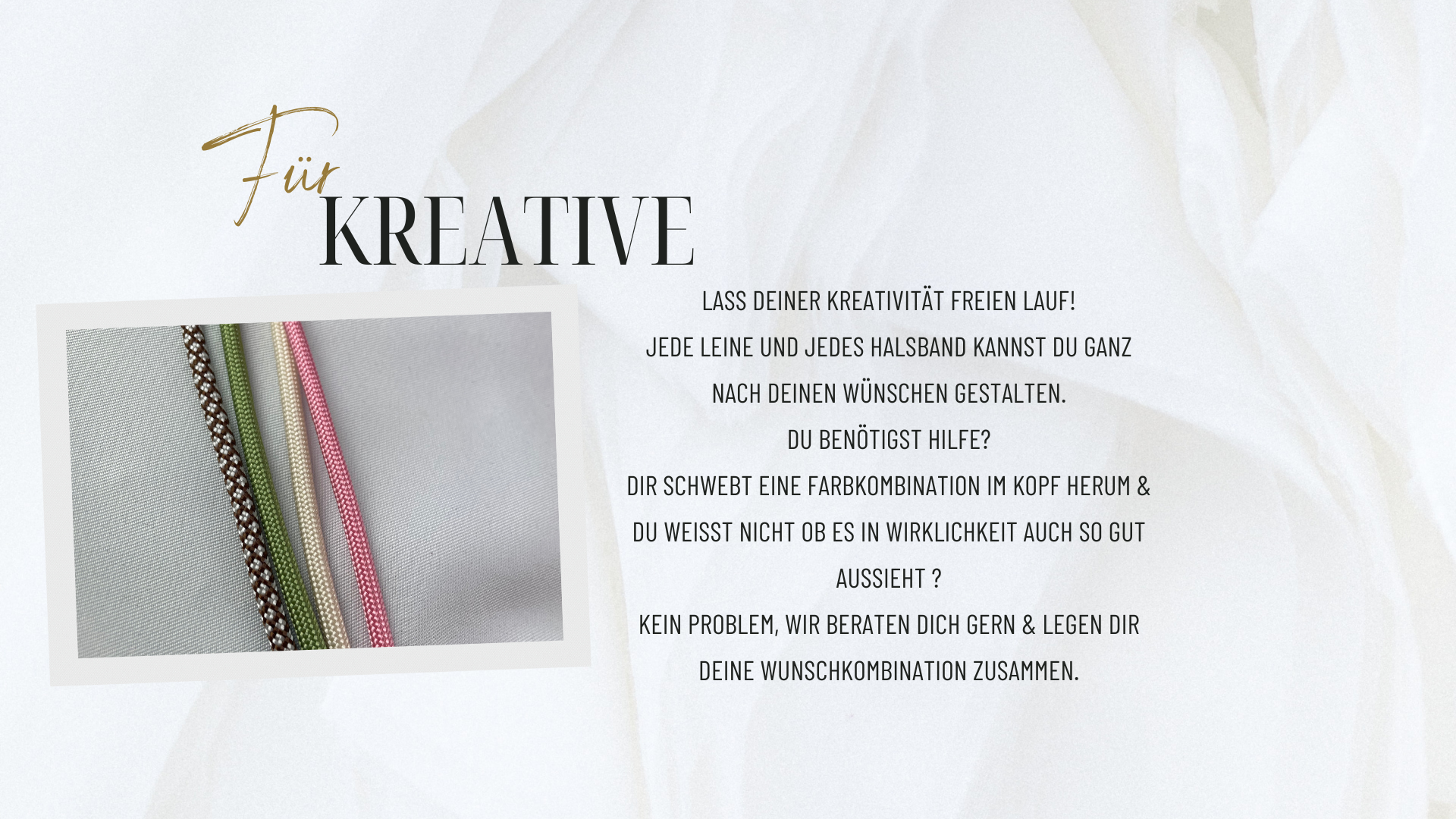 In liebevoller Handarbeit stellen wir für deinen Vierbeiner das perfekte Outfit zusammen. Dank unserer großen Farbauswahl, bleiben keine Wünsche übrig. Von knall bunt bis hin zu schlicht und elegant ist wirklich für jeden was dabei. Unsere Produkte sind nicht nur schön anzusehen, sie sind qualitativ hochwertig und vor allem sicher! Die Sicherheit eures Vierbeiners steht bei uns an erster Stelle. Denn nichts verlässt unsere Manufaktur, was nicht unseren Qualitätsansprüchen entspricht. Versprochen!