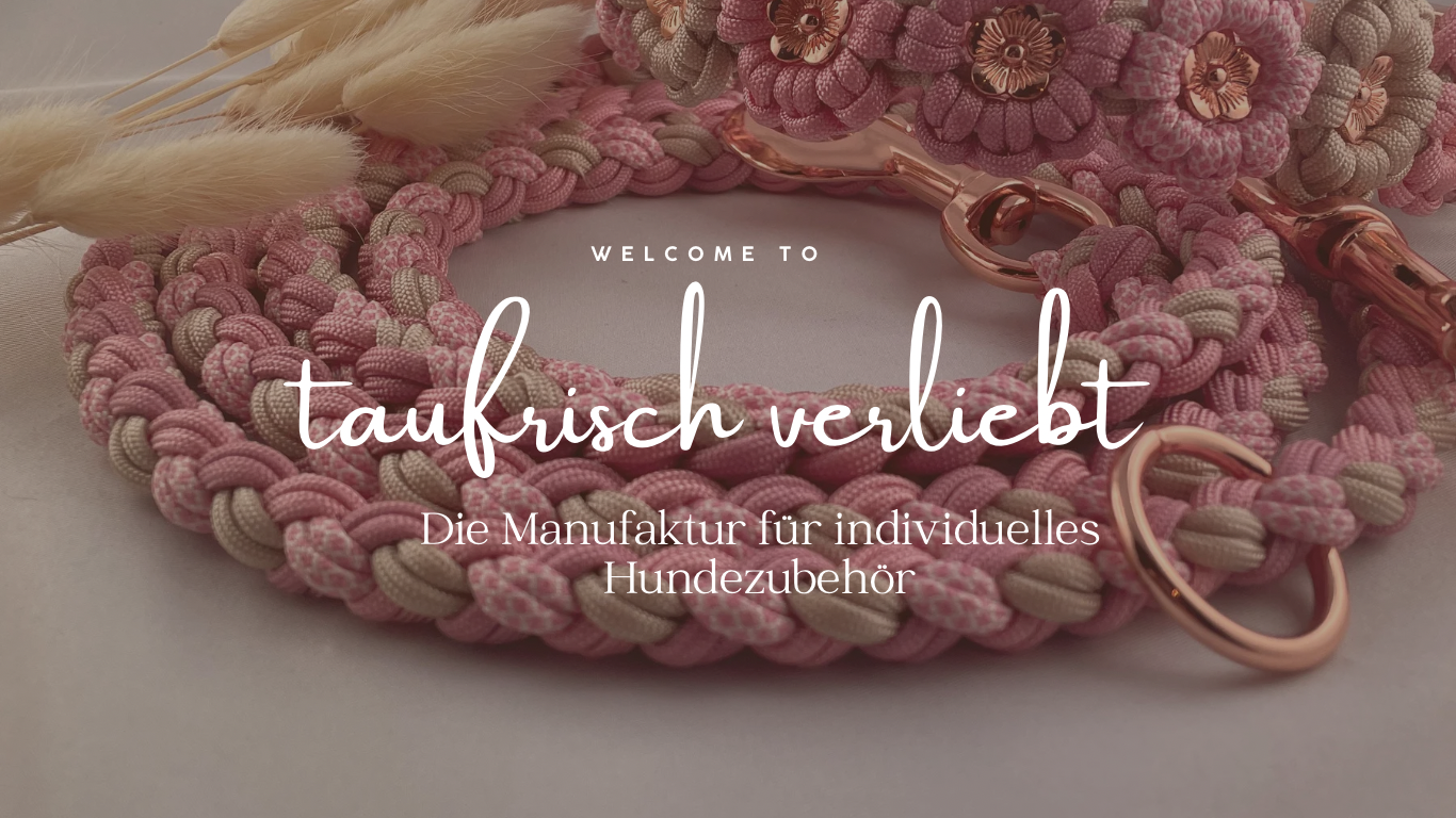 Lotte & Otwin, der eigentliche Grund warum taufrisch verliebt überhaupt existiert. Mit Otwin seinem Einzug, fing alles an. Schon im Welpenalter fanden wir nie Hundezubehör, was ihm wirklich gepasst hat & uns noch eine gewisse Sicherheit geboten hat. Vieles ging recht schnell kaputt. Mit der Zeit fingen wir an Halsbänder & Leinen aus Tau anzufertigen, bei jedem mal wurden wir etwas sicherer. Später fing ich an, Halsbänder aus Paracord zu knüpfen. & bis jetzt liebe ich es!